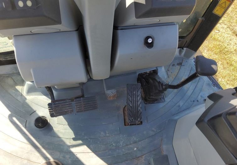 The machine is equipped with an OROPS operator platform with pilot-controlled backhoe controls and a pattern changer, allowing operators to easily switch control patterns and operate with precision and comfort.