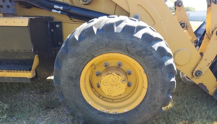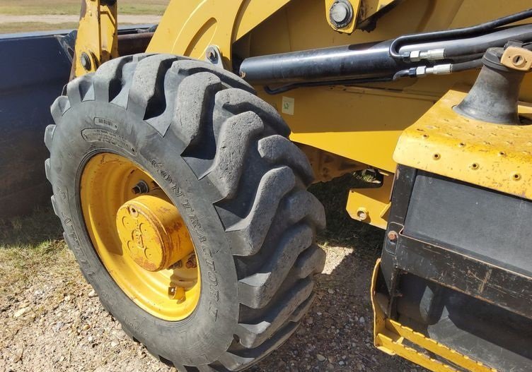 The machine rides on 12.5/80-18 front tires and 19.5L-24 rear tires, providing strong traction, durability, and stability on a variety of jobsite conditions.