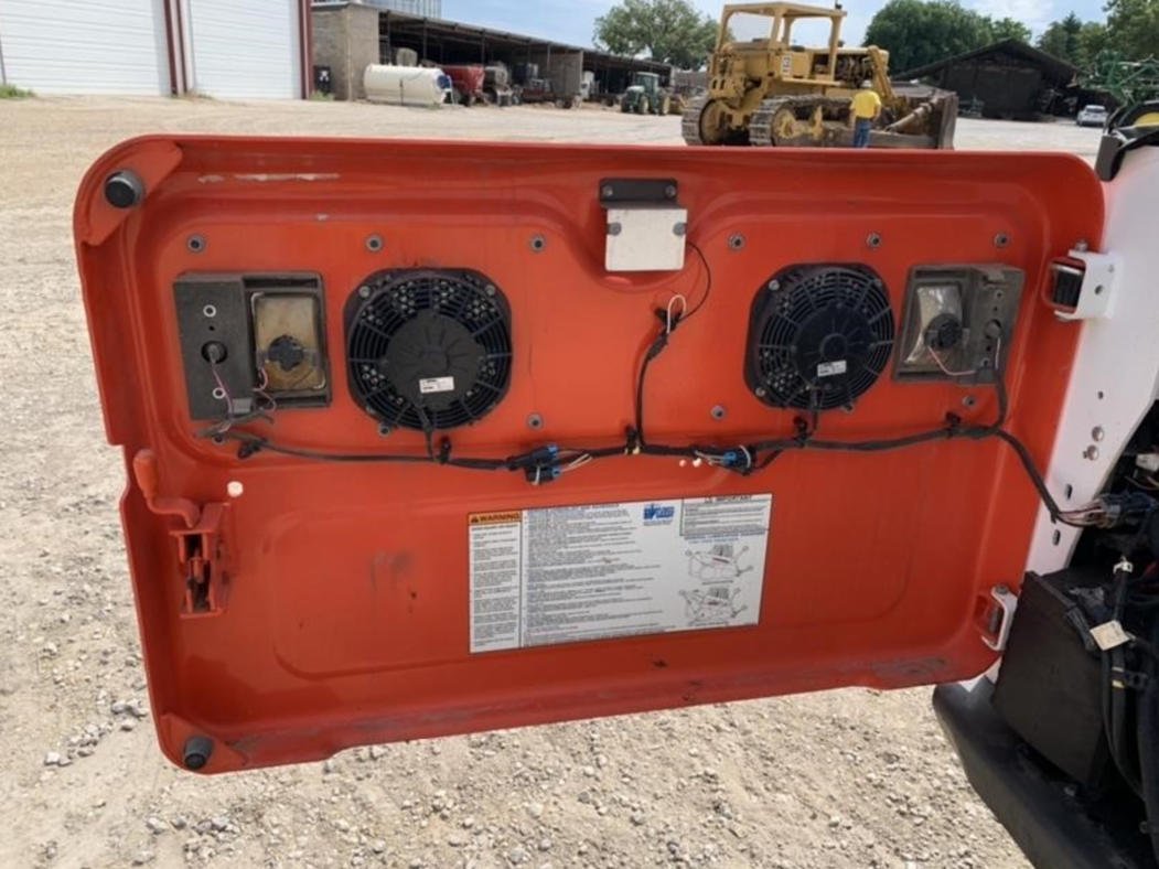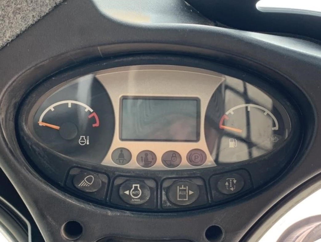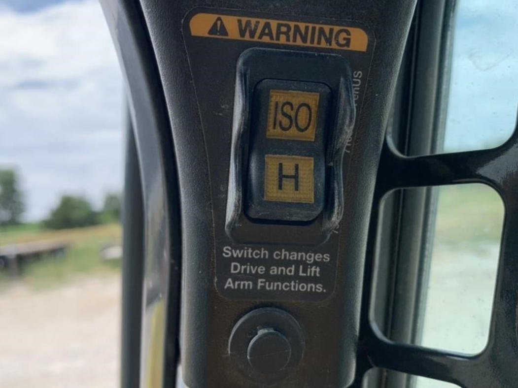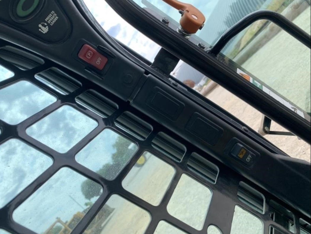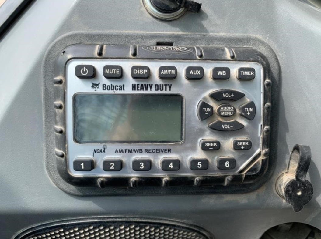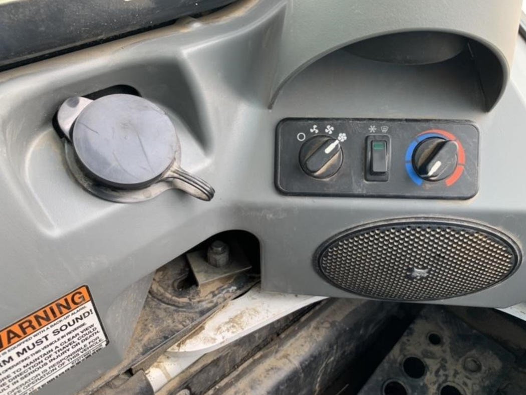 The enclosed cab features heat and air conditioning, automatic ride control, and an integrated stereo system to ensure operator comfort throughout long workdays.