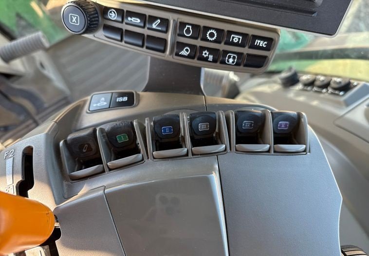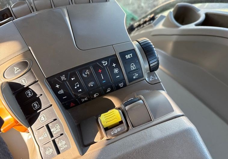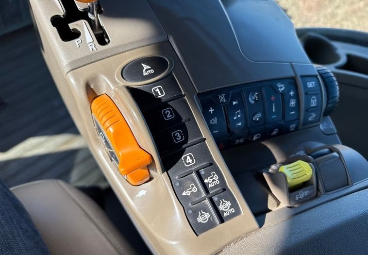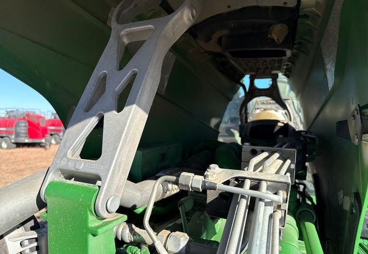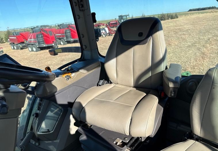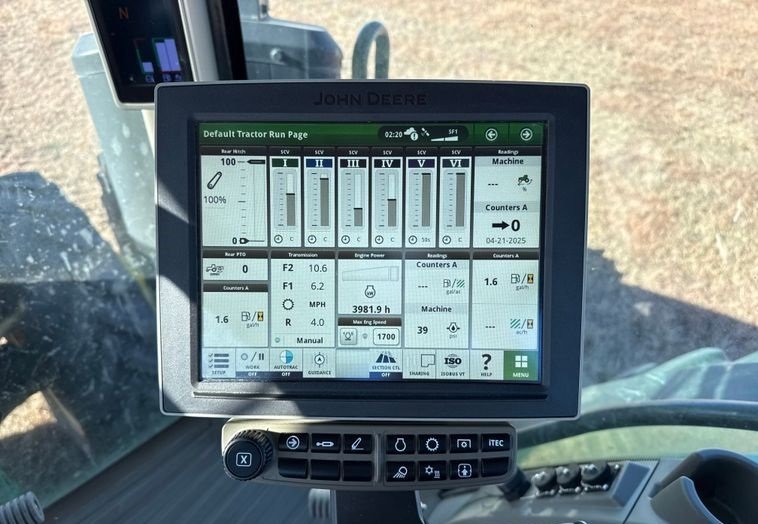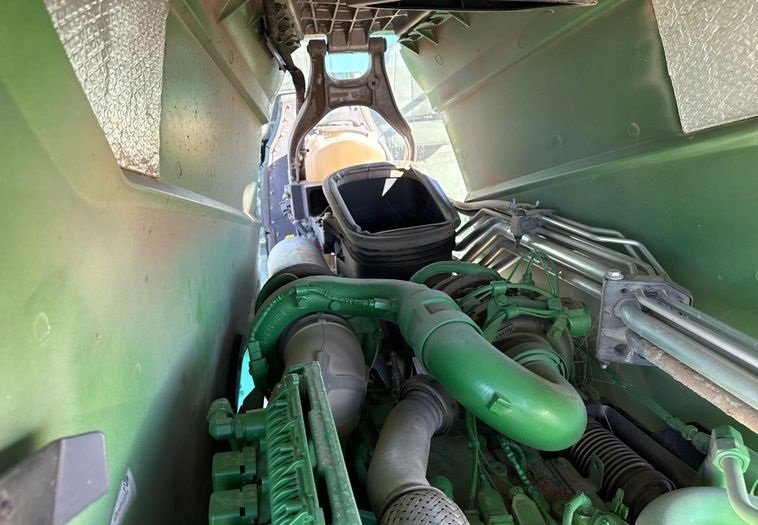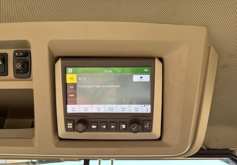 The premium cab is designed for long working hours with ergonomic controls and advanced digital monitoring. The integrated John Deere display and auto steer system enhance accuracy and productivity in precision agriculture.